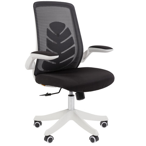 Кресло Chairman CH 565, откидные подлокотники, синхромеханизм, пластик белый, сетка/ткань, черное