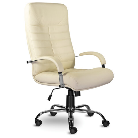 Кресло из натуральной кожи "Орион", хром, монолитный каркас, бежевое