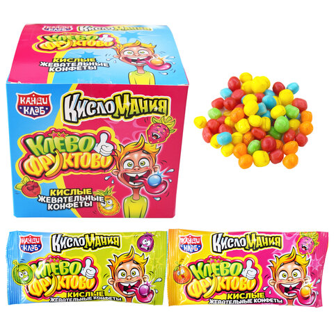 Кислые жевательные конфеты "Кисломания Клево-Фруктово" ассорти, 12 г, КАНДИ КЛАБ, CHW047