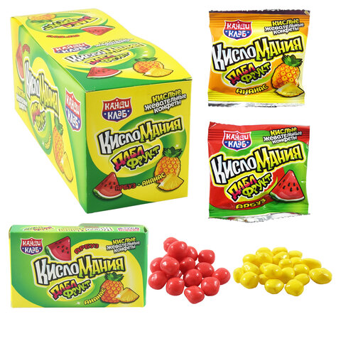 Жевательные конфеты "Кисломания дабл фрукт" арбуз и ананас, 14 г, КАНДИ КЛАБ, CHW041