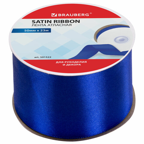 Лента атласная ширина 50 мм, длина 23 м, синяя, BRAUBERG