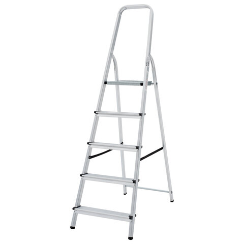 Стремянка алюминиевая 5 ступеней, высота площадки 1,04м, дуга безопасности 0,6м, площадка 26х26см, до 150кг, вес 4кг, НОВАЯ ВЫСОТА