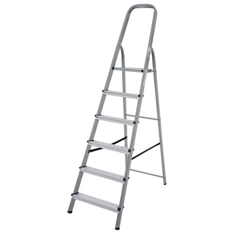 Стремянка сталь / алюминий 6 ступени, высота площадки 1,25м, дуга 0,6м, площадка 26х26см, нагрузка 150кг, вес 7кг НОВАЯ ВЫСОТА