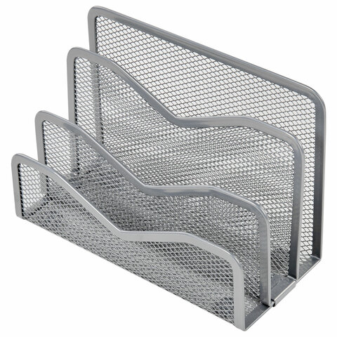 Подставка для сортировки писем и бумаг 3-х секционная BRAUBERG "Germanium", 122х173х83 мм, серебро