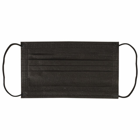 Маски одноразовые КОМПЛЕКТ 50 штук, короб, 3-х слойные, черные, SANITERRA