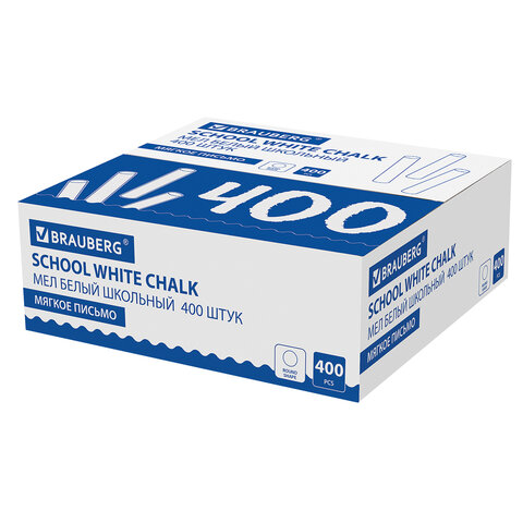 Мел белый круглый мягкий 400 штук, BRAUBERG, картонная упаковка