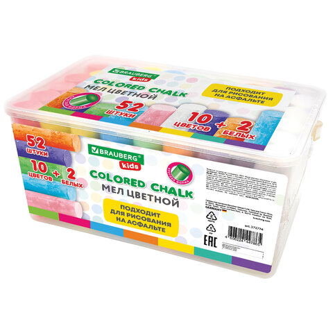 Мел в ведерке для рисования на асфальте 52 штуки, цветной круглый, BRAUBERG KIDS