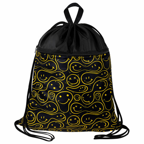 Мешок для обуви BRAUBERG БОЛЬШОЙ, с ручкой, карман на молнии, сетка, 49х41 см, "Smiles"