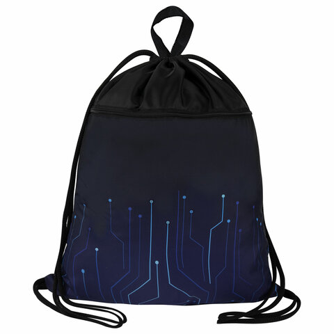 Мешок для обуви BRAUBERG БОЛЬШОЙ, с ручкой, карман на молнии, сетка для вентиляции, 49х41 см, "Electro"