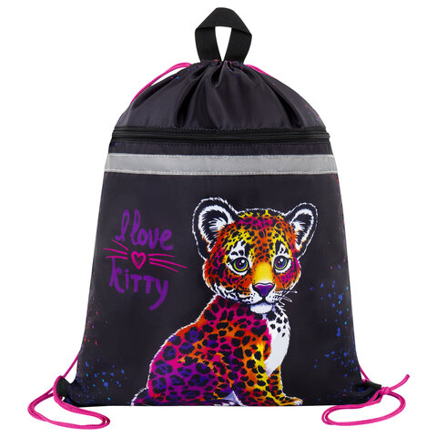 Мешок для обуви BRAUBERG, с петлей, светоотражающая полоса, 2 отделения, 46х36 см, Leopard