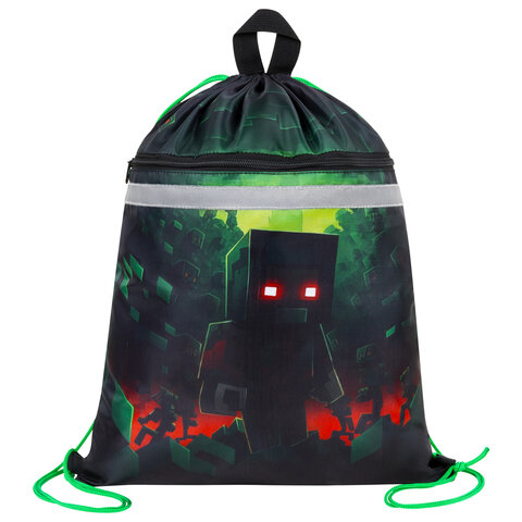Мешок для обуви BRAUBERG, с петлей, светоотражающая полоса, 2 отделения, 46х36 см, Night warrior