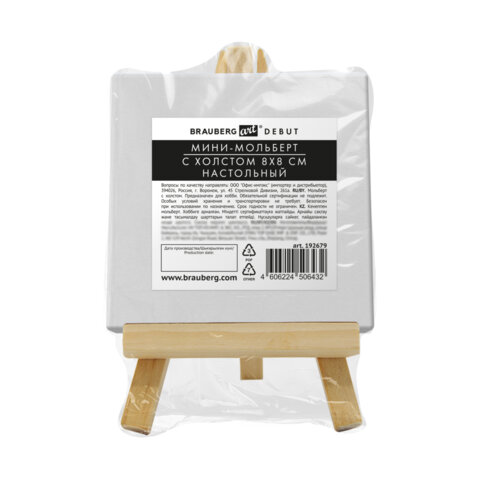 Настольный мини-мольберт с холстом 8х8 см, BRAUBERG ART DEBUT, сосна, хлопок