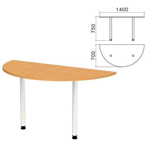 Стол приставной полукруг "Монолит", 1400х700х750 мм, цвет бук бавария (КОМПЛЕКТ)