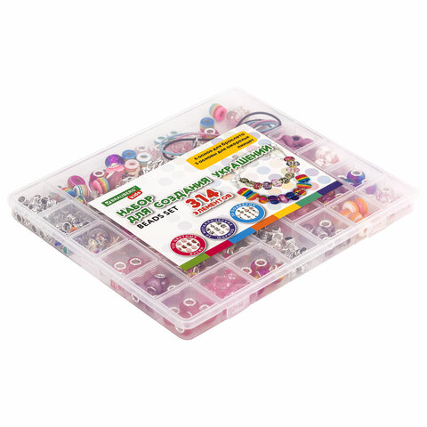Набор для создания бижутерии и украшений 314 элементов Розовый в пластиковом боксе, BRAUBERG KIDS