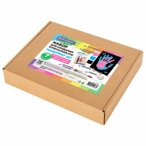 Набор отпечатки рук: холст 18х24 см, акрил 3 цвета, кисть + сертификат и подставка В ПОДАРОК! BRAUBERG HOBBY