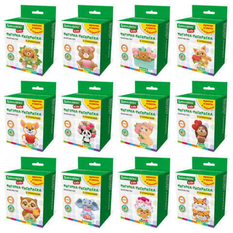 Фигурка-раскраска из гипса "С открыткой", с красками и кистью, ассорти, BRAUBERG KIDS