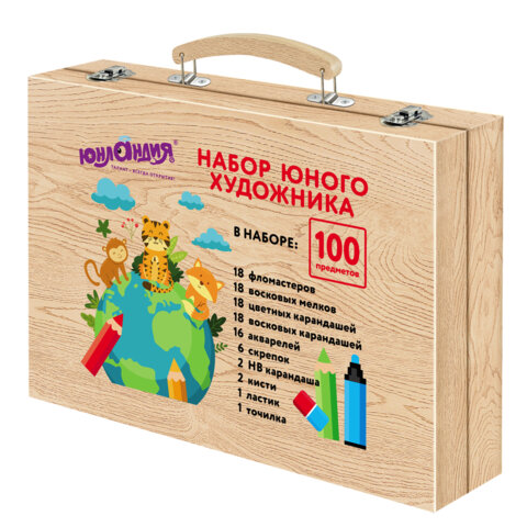 Набор ЮНОГО ХУДОЖНИКА "ANIMALS" для рисования и творчества в кейсе ЮНЛАНДИЯ, 100 предметов