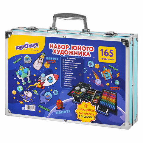 Набор ЮНОГО ХУДОЖНИКА "КОСМОС" для рисования и творчества в кейсе ЮНЛАНДИЯ, 165 предметов