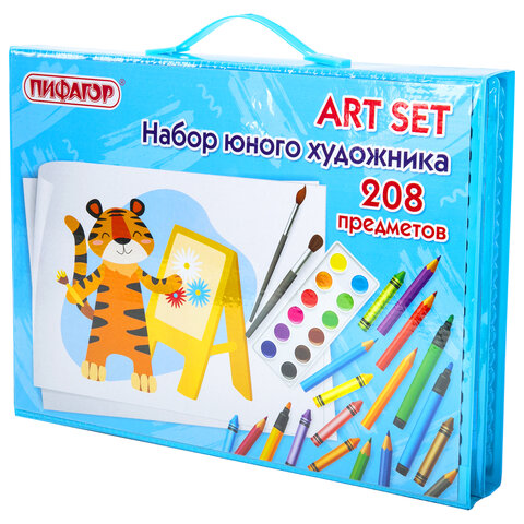 Набор ЮНОГО ХУДОЖНИКА "Тигренок" для рисования и творчества с мольбертом ПИФАГОР, 208 предметов