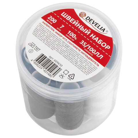 Набор швейный "Помощница", нитки 7 шт., 5 цветов, 35 ЛЛ / 100 ЛЛ, 200 м, иглы, инструменты, DEVELIA (Девелиа)