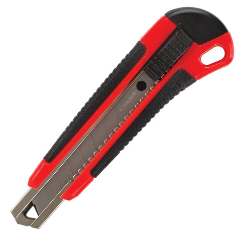Нож канцелярский 18 мм BRAUBERG "Universal", 3 лезвия в комплекте, автофиксатор, черно-красный
