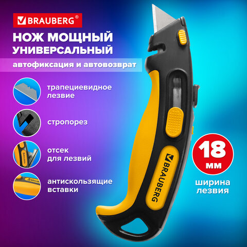 Нож универсальный мощный, BRAUBERG METALLIC PRO, автофиксатор, функция автовозврата