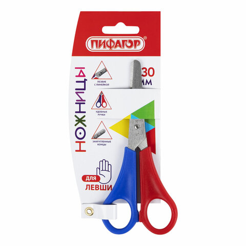 Ножницы ПИФАГОР, 130 мм, для левши, с линейкой, в картонной упаковке с европодвесом