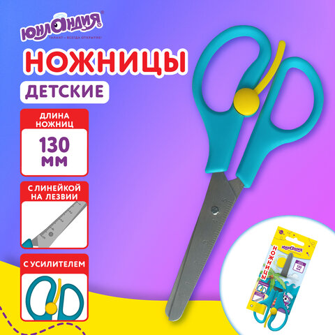 Ножницы ЮНЛАНДИЯ, 130 мм, с усилителем и линейкой, эргономичные ручки, голубые