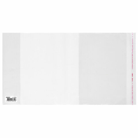 Обложка ПП со штрихкодом для дневников, учебников, прописей МАЛОГО ФОРМАТА, КЛЕЙКИЙ КРАЙ, 80 мкм, 220х460 мм, прозрачная, ПИФАГОР