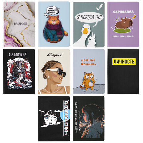 Обложка для паспорта "Cool Mix", два кармана, 10 дизайнов ассорти, цветной принт, ПВХ, STAFF