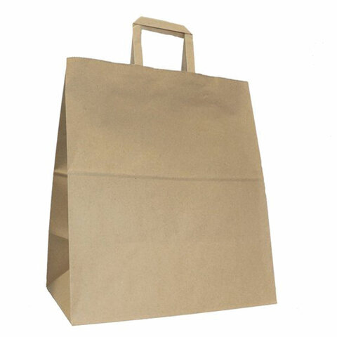 Крафт-пакет бумажный 32х20х37 см, плоские ручки, плотность 90 г/м2