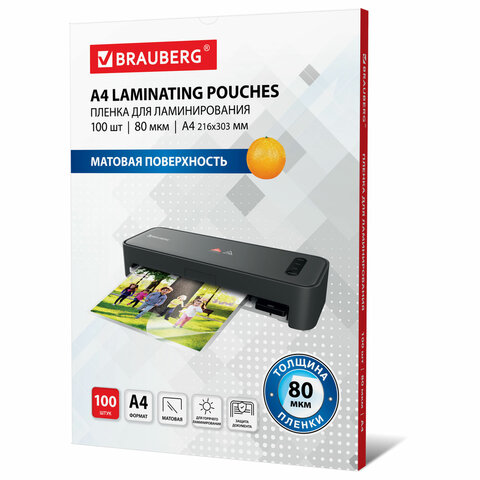 Пленки-заготовки для ламинирования А4, КОМПЛЕКТ 100 шт., 80 мкм, МАТОВАЯ, BRAUBERG