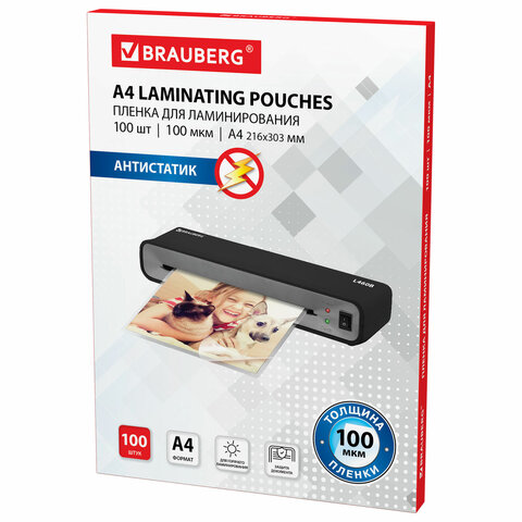 Пленки-заготовки для ламинирования АНТИСТАТИК, А4, КОМПЛЕКТ 100 шт., 100 мкм, BRAUBERG