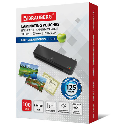Пленки-заготовки для ламинирования МАЛОГО ФОРМАТА (85х120 мм), КОМПЛЕКТ 100 штук, 125 мкм, BRAUBERG