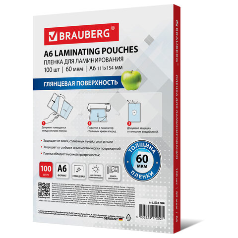 Пленка для ламинирования BRAUBERG надежно защитит документы от влаги, пыли, воздействия УФ-лучей и других внешних факторов.Дополнительно
