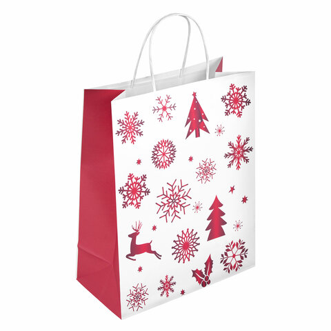 Пакет подарочный КОМПЛЕКТ 10 штук, новогодний, 26x13x32 см, "Winter Kraft", ЗОЛОТАЯ СКАЗКА