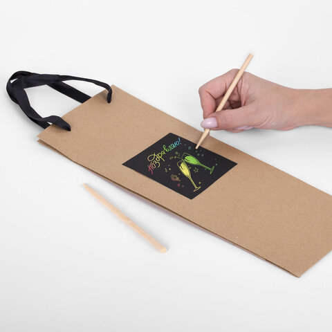 Пакет подарочный под бутылку КОМПЛЕКТ 7 шт., 13х8х36 см, скретч-слой + стилус, крафт, ЗОЛОТАЯ СКАЗКА