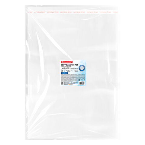 Пакеты БОПП с клеевым клапаном, КОМПЛЕКТ 100 штук, 30х40 + 4 см, 53 мкм, с усиленным швом, BRAUBERG