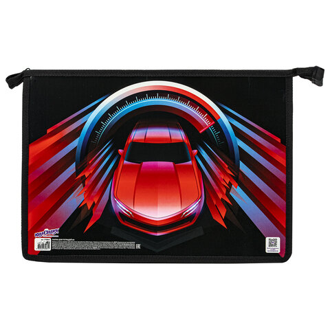 Папка для тетрадей ЮНЛАНДИЯ А4, 1 отделение, картон/пластик, конгрев, на молнии, "High speed"