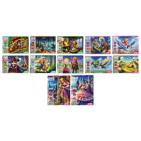 Пазлы — это развивающая игра для детей, объединяющая сборку красочной картинки с развитием моторики и памяти. Наборы включают сюжеты народных историй и помогют детям узнавать персонажей, развивать логику и воображение через визуализацию знакомых сюжетов.Дополнительно