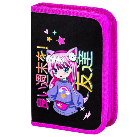 Пенал BRAUBERG, 1 отделение, 1 откидная планка, полиэстер, 21х14 см, "Anime girl"