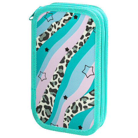Пенал ЮНЛАНДИЯ, 2 отделения, ламинированный картон, блестки, 19х11 см, "Trendsetter"