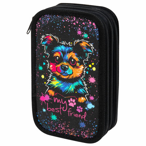 Пенал ЮНЛАНДИЯ, 3 отделения, картон с эффектом soft-touch, 19х11 см, "True friend"