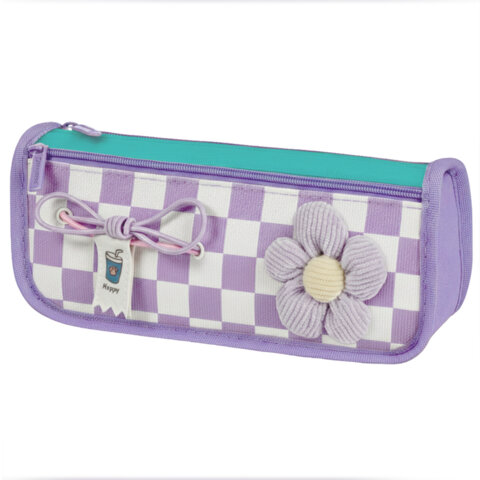 Пенал мягкий BRAUBERG KIDS, 2 отделения, полиэстер, "Checked flower", 22x10x6 см
