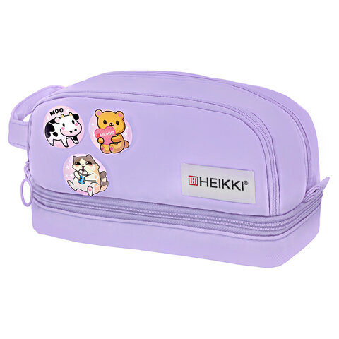 Пенал-органайзер HEIKKI (ХЕЙКИ) с ручкой, значки, 2 отделения, откидная планка, 22x13х10 см, фиолетовый