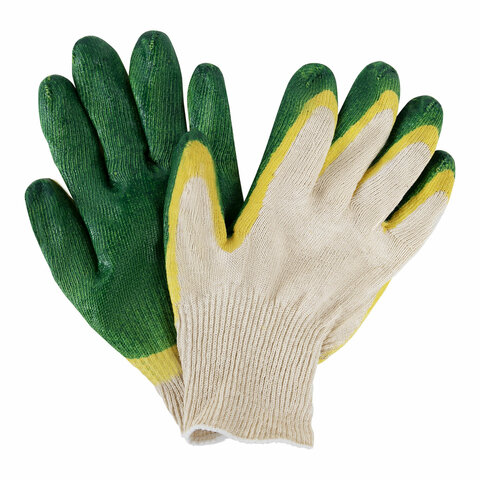 Перчатки хлопчатобумажные износостойкие ДВОЙНОЙ облив, 13 класс, КОМПЛЕКТ 100 ПАР, LAIMA ЛЮКС