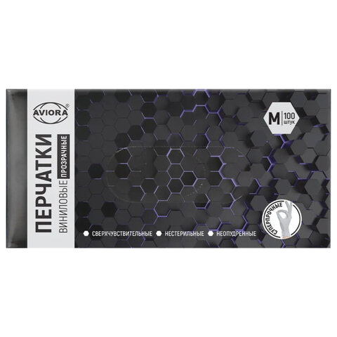 Перчатки виниловые, КОМПЛЕКТ 50 пар (100 штук), ПРОЧНЫЕ, прозрачные, размер М (средний), AVIORA, 402-638
