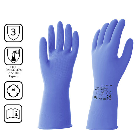Перчатки латексные КЩС, сверхпрочные, плотные, хлопковое напыление, размер 9,5-10, XL (очень большой), синие, HQ Profiline
