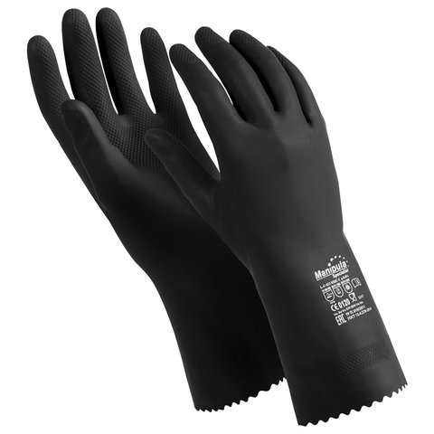 Перчатки латексные MANIPULA "КЩС-2", ультратонкие, размер 8-8,5, M (средний), черные, L-U-032/CG-943