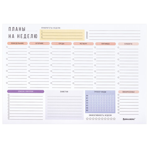 Блокнот-планер НА НЕДЕЛЮ недатированный отрывной с подложкой, 52 л., А4, 297х210 мм, BRAUBERG